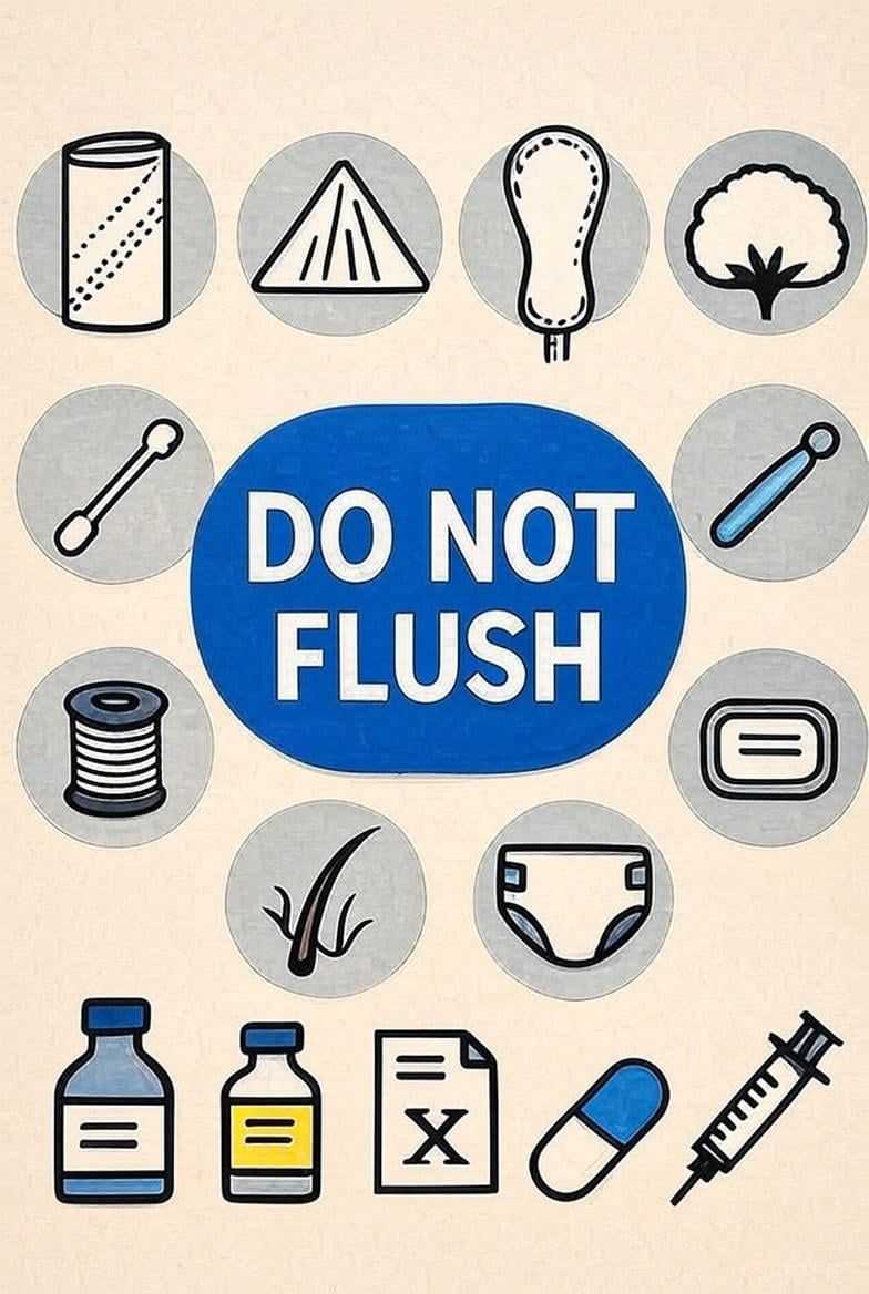 Even wipes labeled “flushable” don’t break down like toilet paper — they can clog pipes, cause sewer backups, and lead to costly repairs.